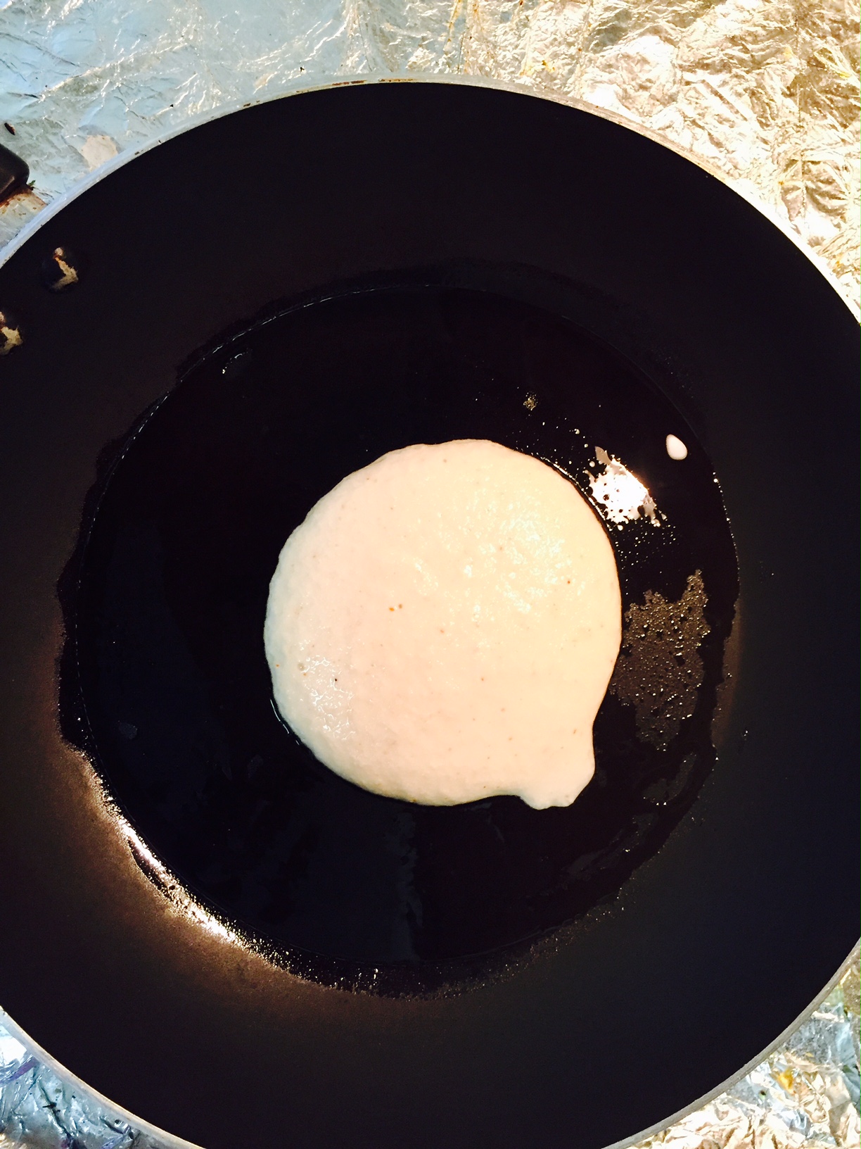 Step6: Heat a tawa or griddle and spread some oil. you can also use a nonstick pan. Take the batter in a large serving spoon. Pour the batter and spread it gently, don’t spread too much.