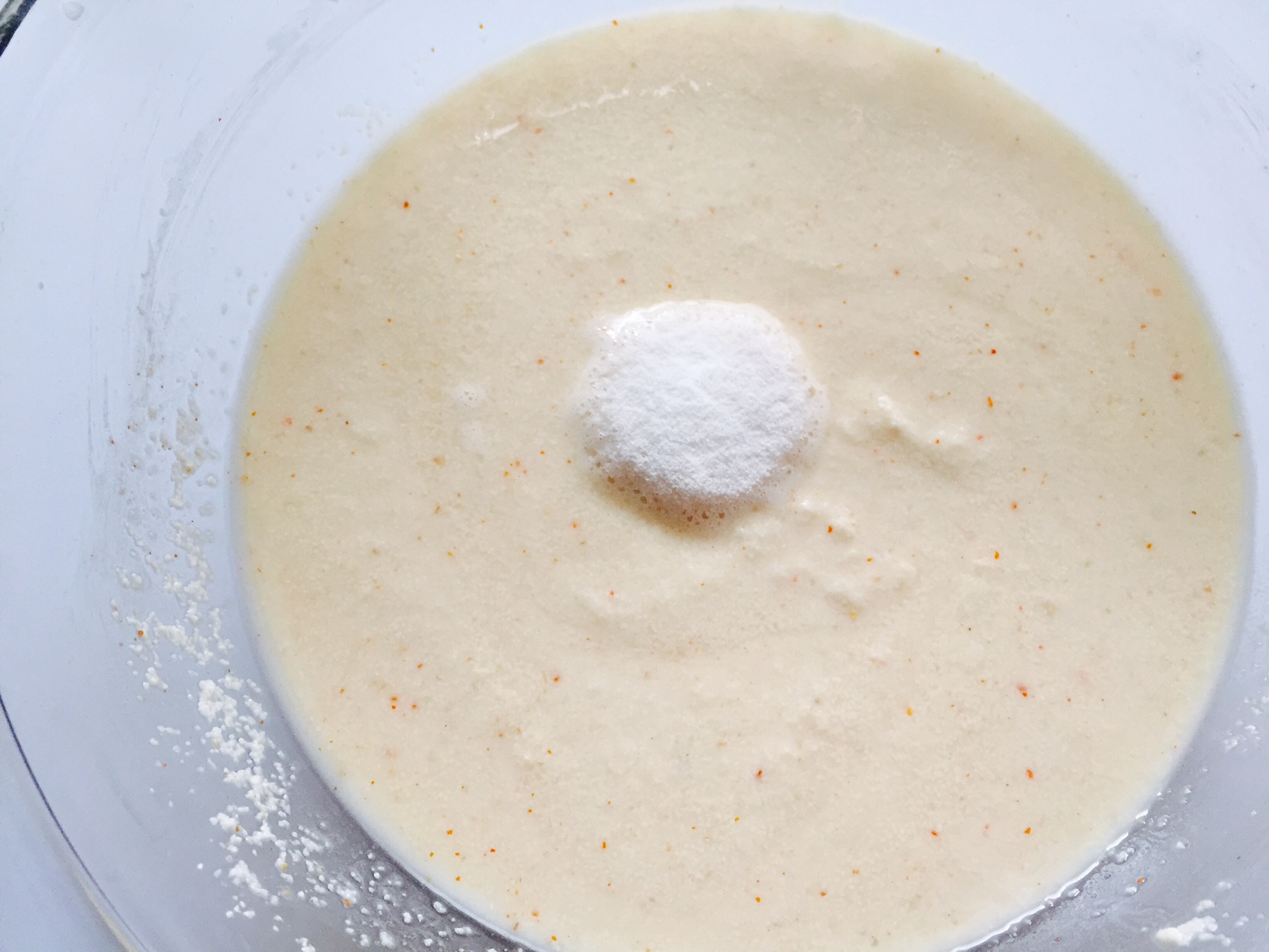 Step2: Now add water little by little and make a batter same as required for making pakoras and keep aside for 20-25 minutes to make it puffy.