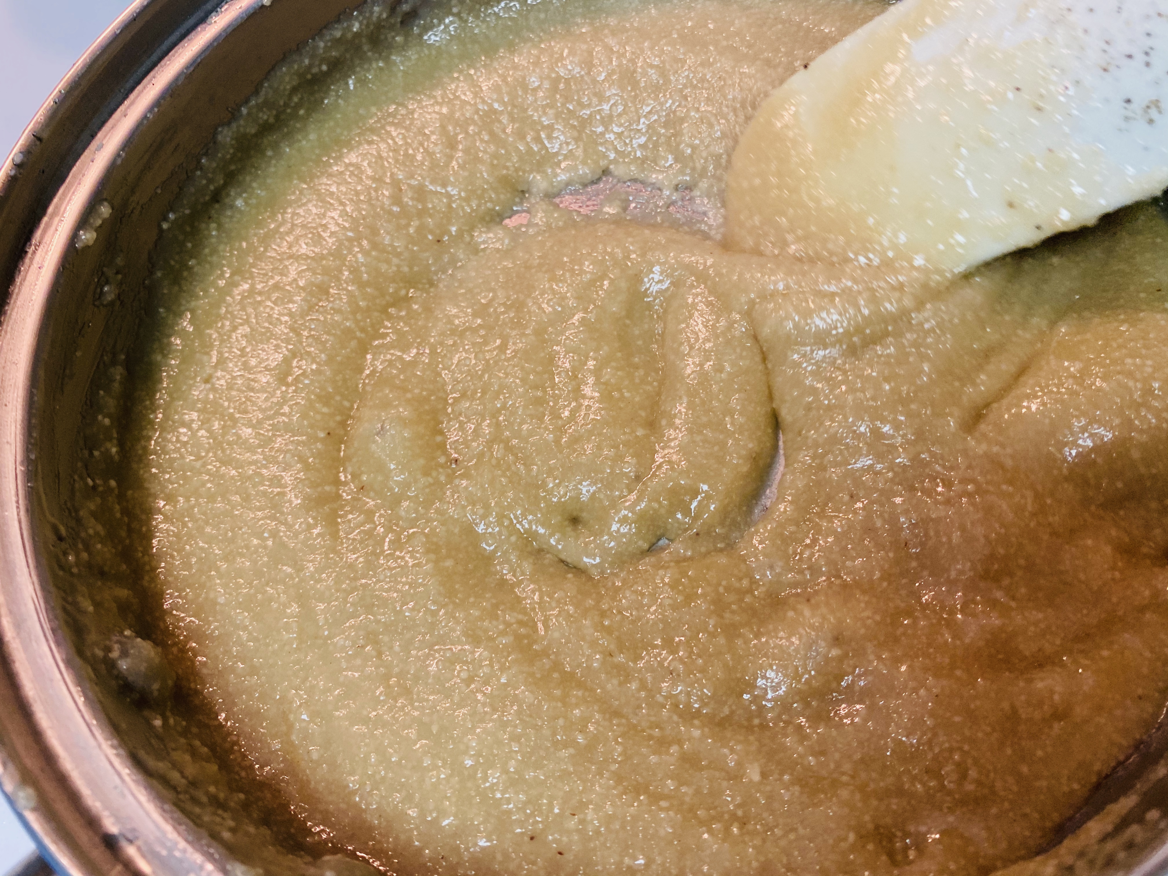 - Cook cashew paste on a medium-low flame and keep stirring continuously to avoid sticking it at the bottom of the pan.