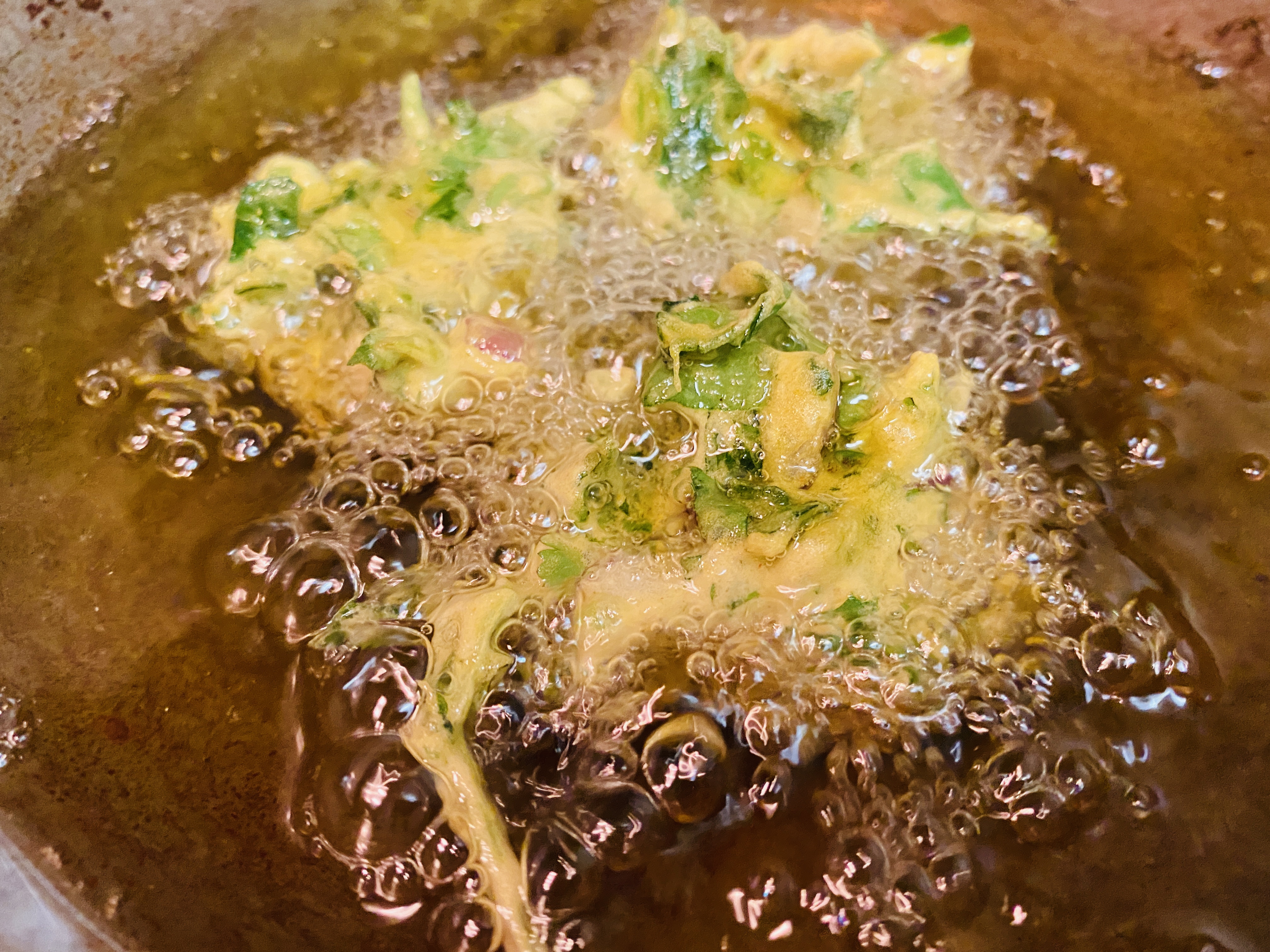 Step5: Fry the pakoras (fritters) for 2-3 minutes on both sides, until they are golden brown and crisp.