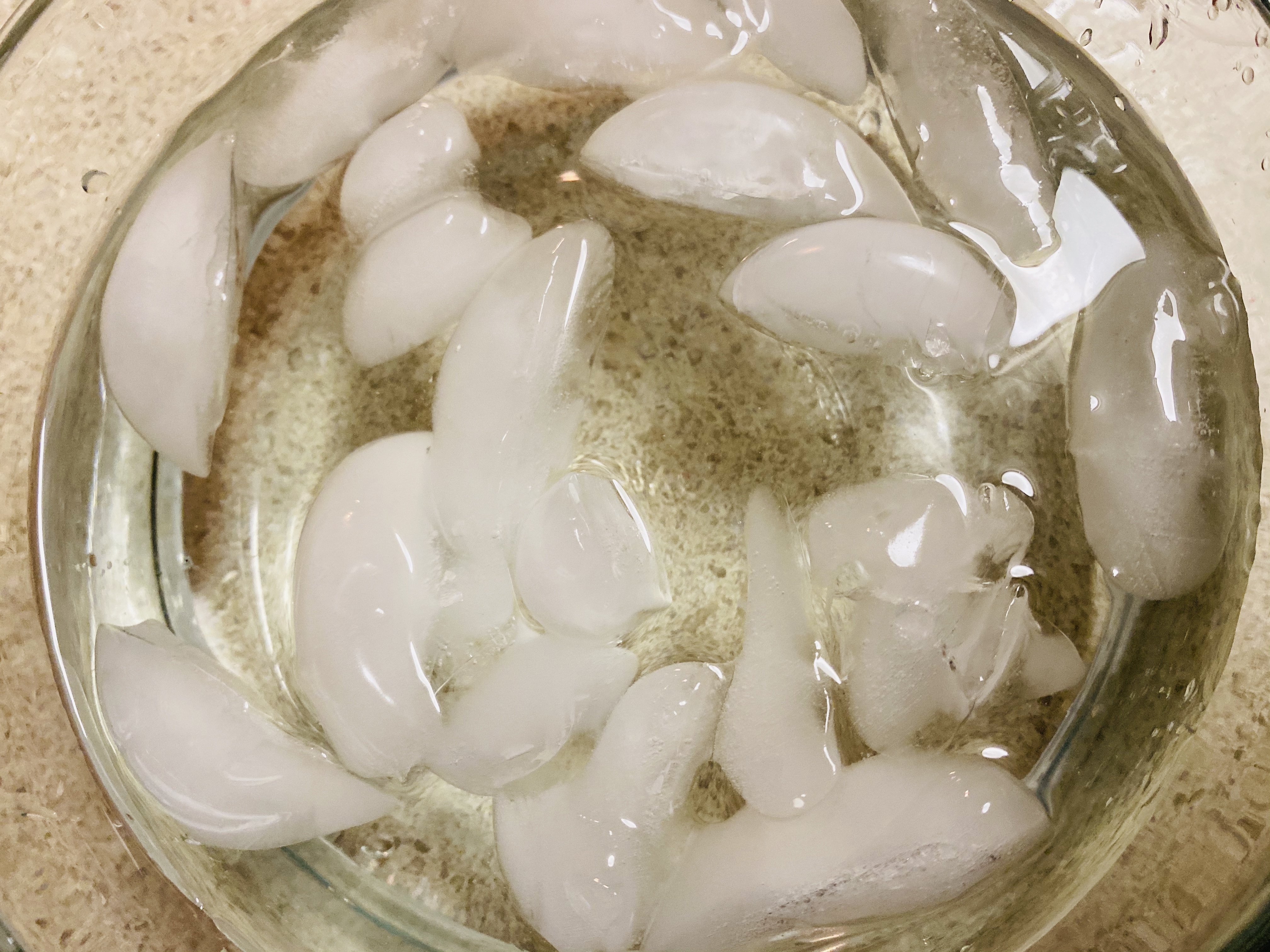 Step3: Now add 1/2 cup ice-cold water (except ice-cube). Using spoon stir and dissolve all the crystals.