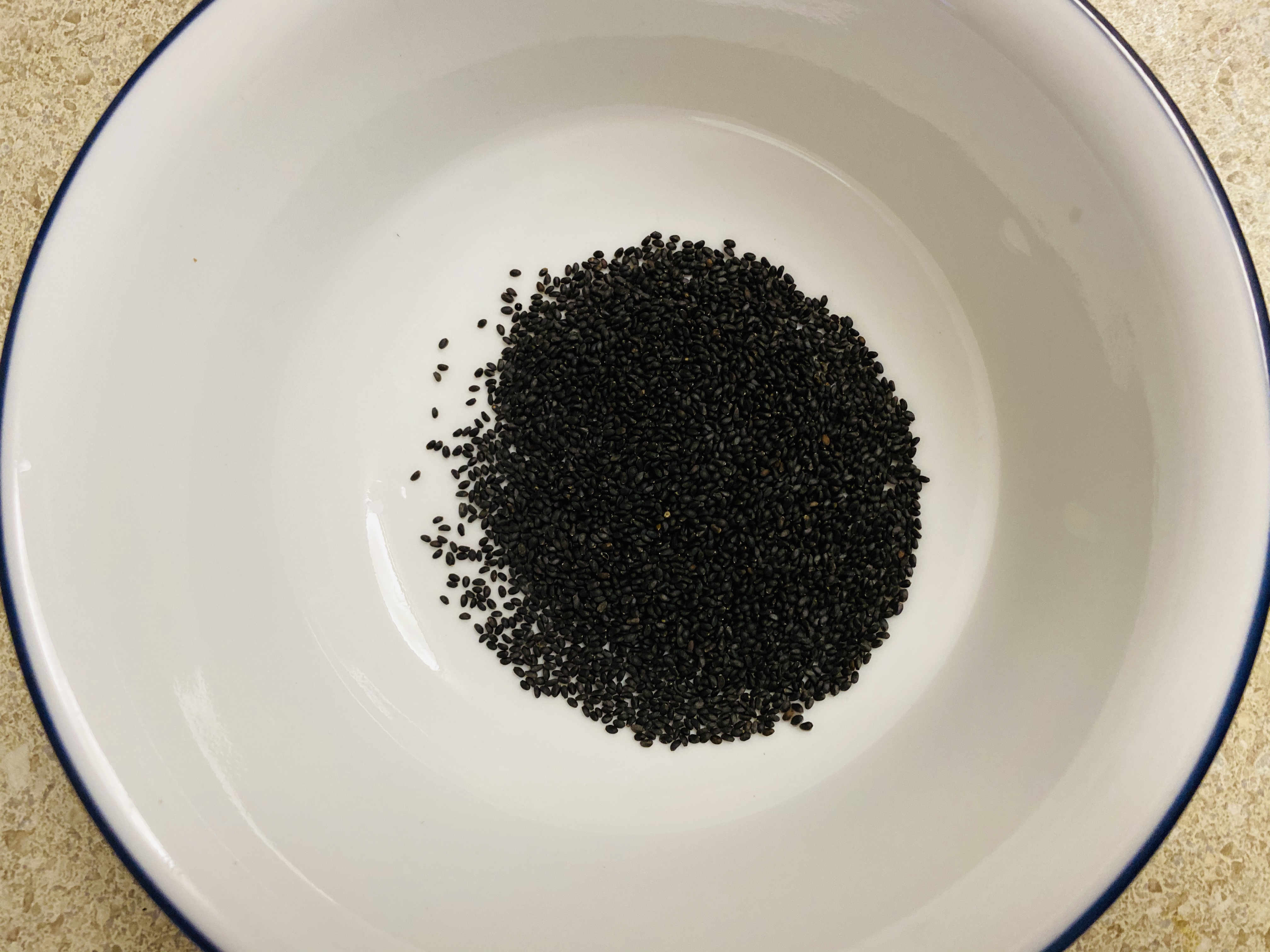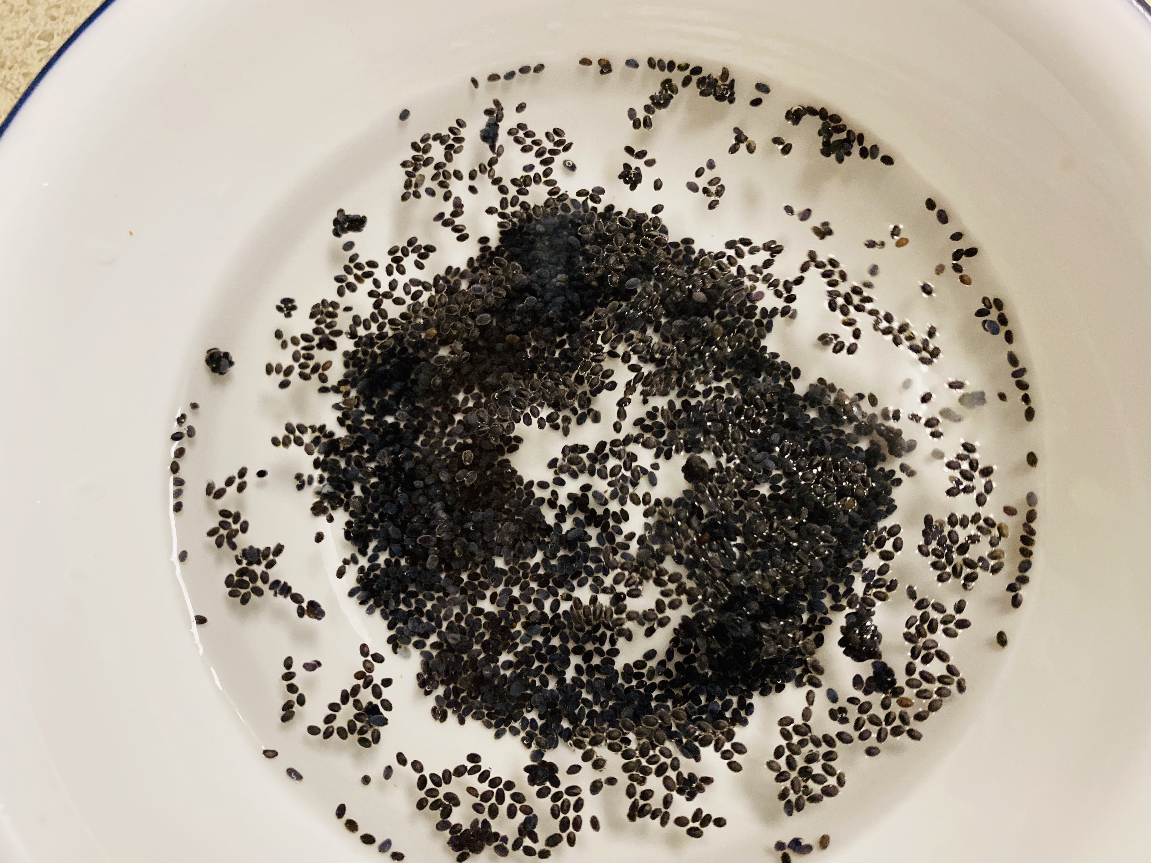 Step16: They begin to swell at the touch of water, with a translucent white film coating each black seed, and they become twice their size. Warm water causes the seeds to fully swell up releasing antioxidants and beneficial digestive enzymes. Keep aside.